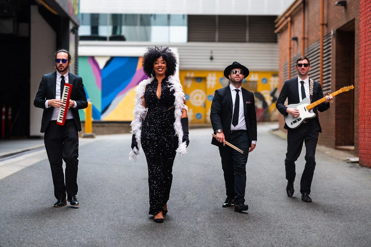 (From left) A History of Motown’s Cole Tinney, Krystle Dos Santos, Jon Holisko, and Gavin Youngash. Photo by Ben Parker