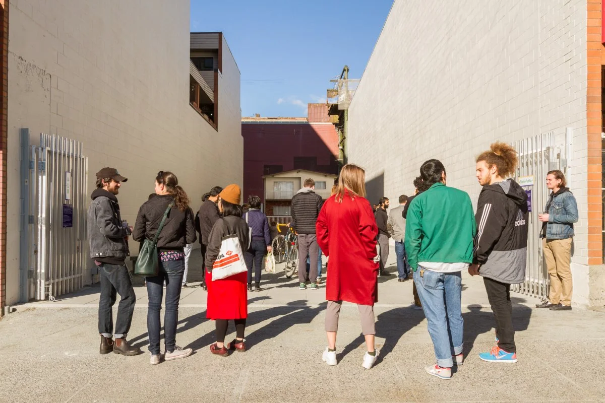Opening of public artwork by Ken Lum, commissioned by 221A at 271 Union Street in Vancouver, 2015. Photo by Dennis Ha, courtesy of 221A