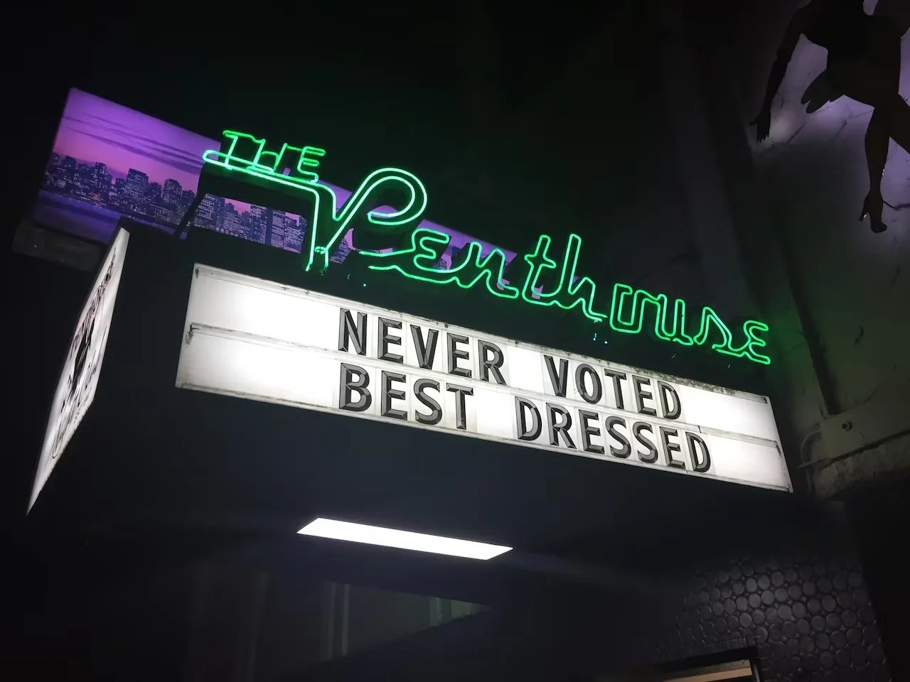 The eight-decade-old Penthouse Nightclub’s neon marquee has made traffic-jammed commuters and passersby laugh for the last decade. Many of the strip bar’s witty messages have gone viral on social media (“NEVER VOTED BEST DRESSED”, “RELAX GUYS, COLDPLAY ISN’T HERE”, the Trump-aimed “FOREVER NEIGHBOURS, NEVER NEIGHBORS”, or the pandemic-era “CLOTHED UNTIL FURTHER NOTICE”). Now Penthouse bartender Benjamin Jackson—the jokester behind the marquee messages—and Vancouver journalist Aaron Chapman have joined forces on a new coffee-table book that pays tribute to the irreverent icon. It mixes full-colour photographs from the nightclub’s archives with interviews and anecdotes from the establishment’s staff. Chapman is becoming a bit of a Penthouse aficionado: his first book, 2012’s Liquor, Lust, and the Law, focused on the Seymour Street institution. His other local history books include Live at the Commodore, The Last Gang in Town, Vancouver After Dark, and Vancouver Vice.