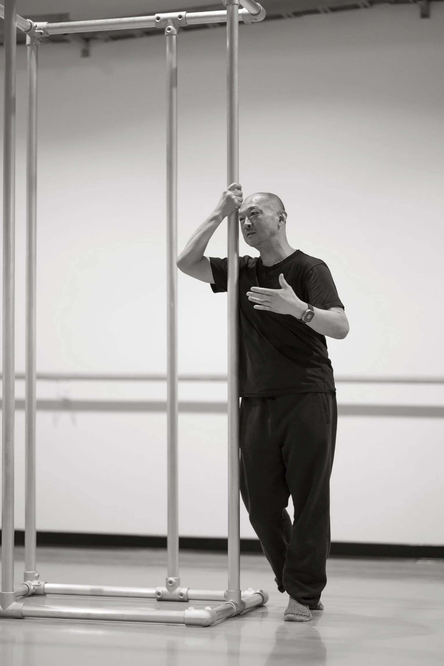 Where Last Breath is concerned, Wang’s inspiration for Senez’s eight-feet-tall metal sculpture was a wobbly ballet bar at the studio. Reimagining it as a heavy set piece instantly grounded the choreography, giving the dancers a sense of stability.