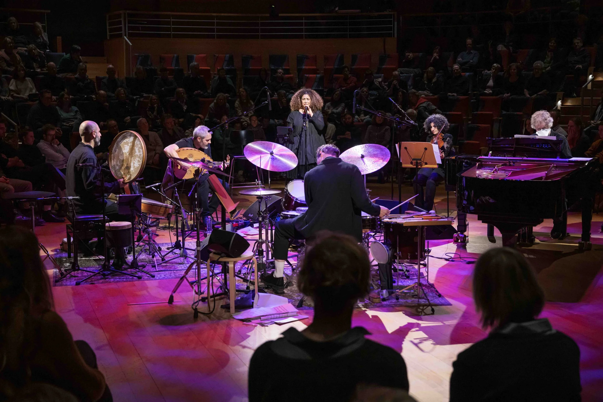 Ru’ya—which means “foresight” in Arabic—is an ensemble that brings together diverse musical traditions. Led by Vancouver-based guitarist and oud player Gordon Grdina, the group features Ghalia Benali, an incredible Arabic singer from Tunisia, based in Belgium, along with American pianist Matt Mitchell, Turkish-American violinist Eylem Basaldi, Canadian percussionist Hamin Honari, and German drummer Christian Lillinger.