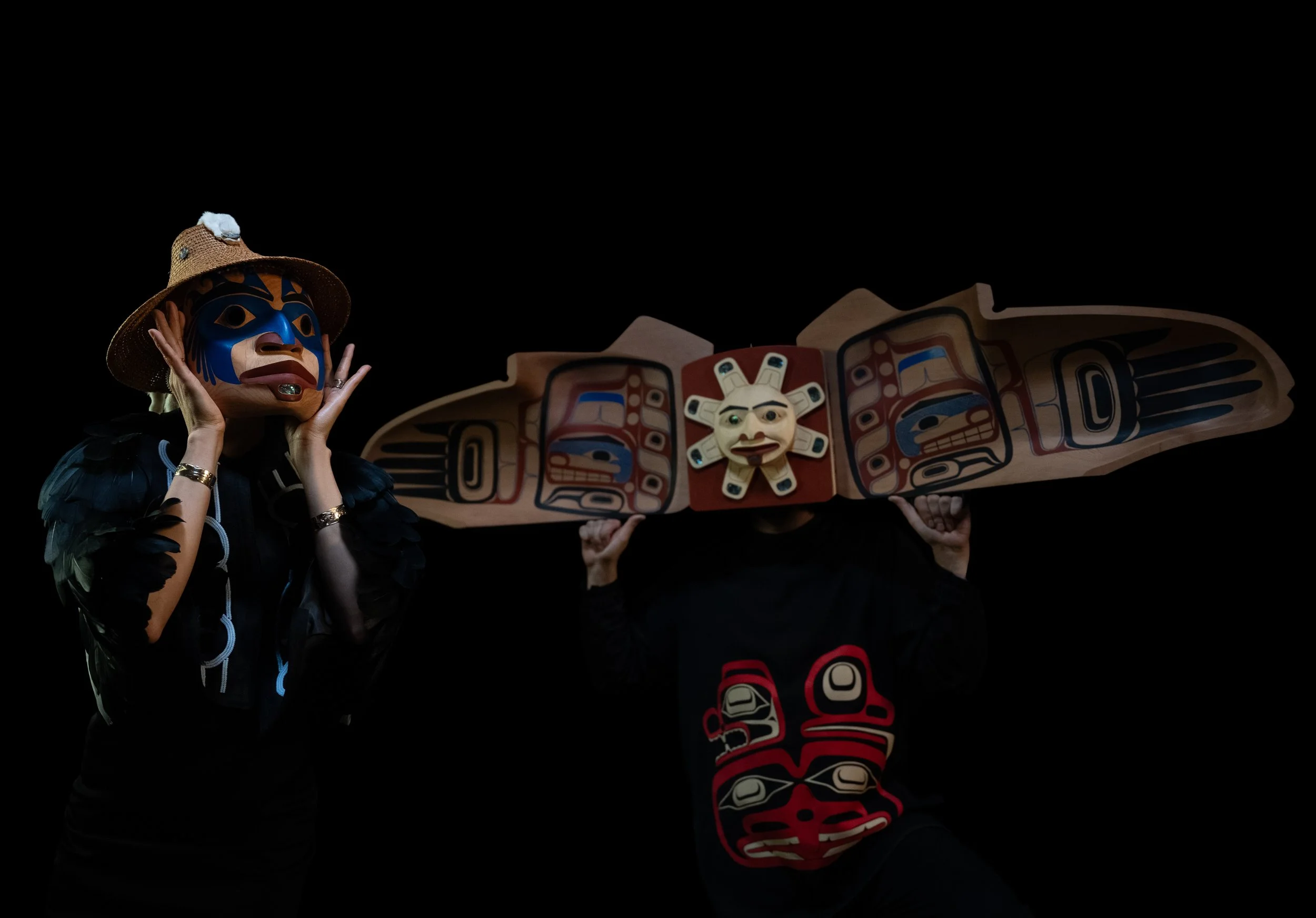 Raven Mother, with the Raven transformation mask at right. Photo by Andrew Grenier
