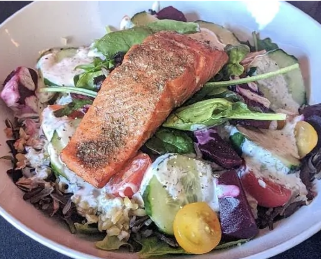 Pow Wow Power Salad, Salmon n’ Bannock.