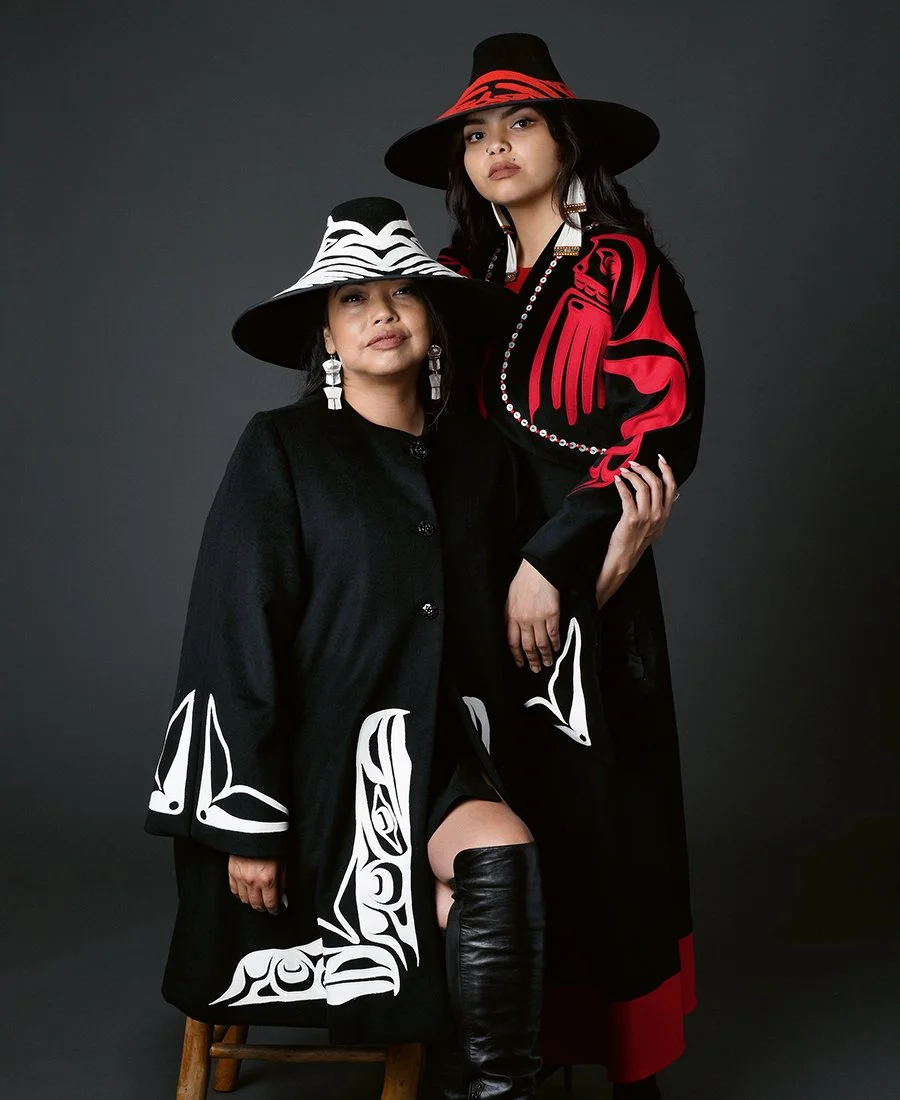 “So from there, I just started collecting as much of my work as I could,” the pioneering artist behind the famed Feastwear line tells Stir in a phone interview. “And then people started gifting things back to me—major pieces. And so this collection formed that spanned my whole career as a designer. From that, we formed this exhibition up in Haida Gwaii called Raven Comes Full Circle. It’s kind of like the book became the catalogue for the exhibit,” she says, referring to the show that continues in the Haida Gwaii Museum at Kay Llnagaay until December 21.