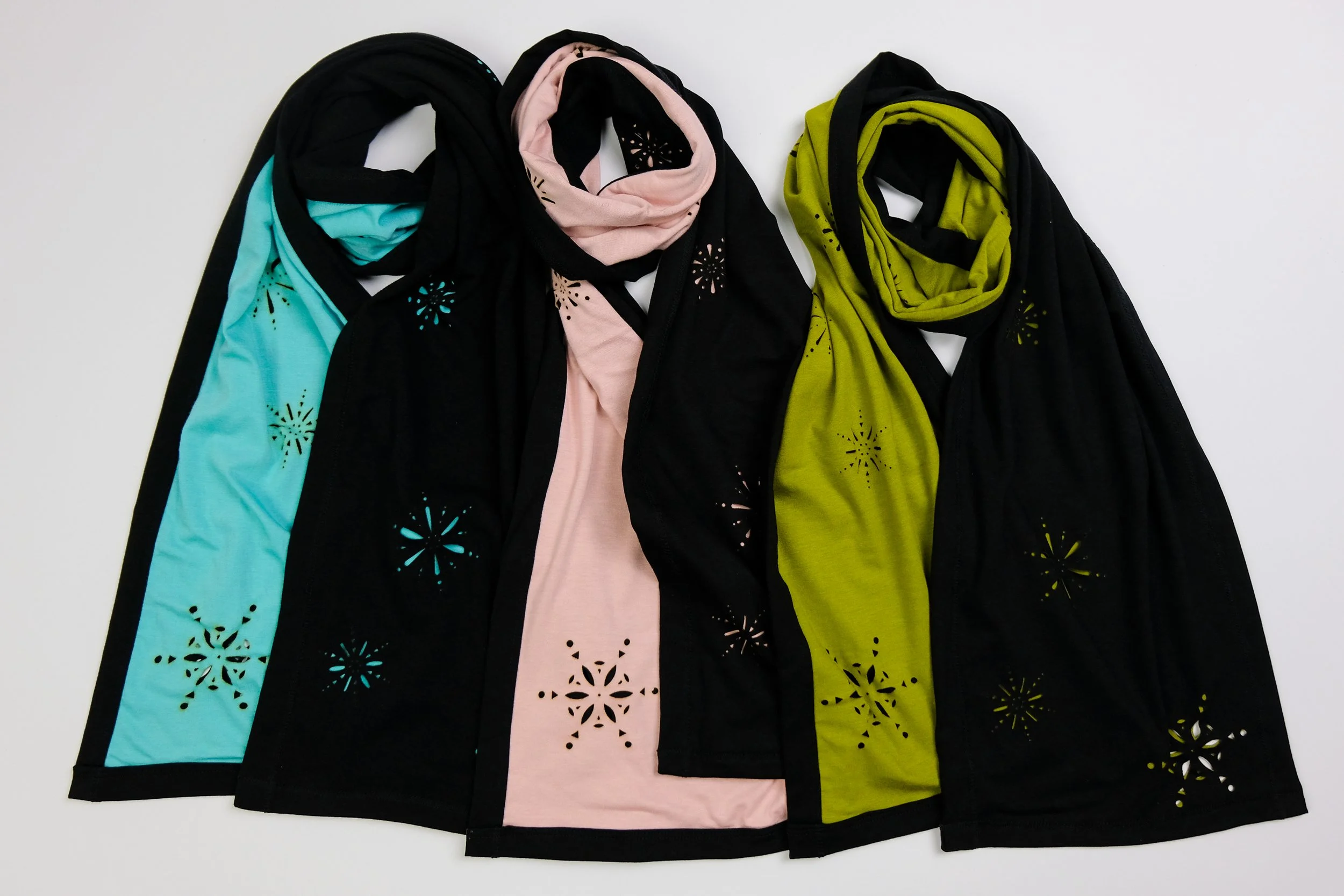 Working out of her Hastings studio today, Gruzling has come full circle, returning to laser cutting—this time on eco-conscious fabrics. Some of the cutouts reveal skin or whatever you wear underneath the shawls and other pieces; others, like her scarves, are double layered, so the cutout reveals a colour underneath. (Her favourite combo at the moment is brilliant turquoise with red.)