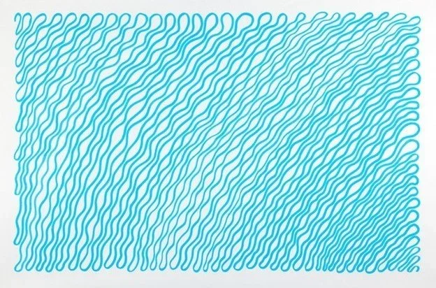 Despite consisting of a single line in only one colour on a completely flat surface, Mahler’s drawings somehow create an illusion of depth and movement, evoking ripples in sand dunes or gently undulating waves.