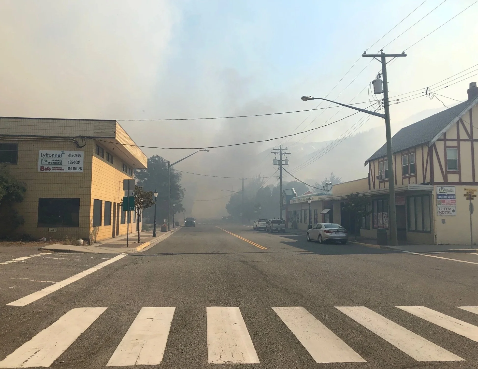 Wildfire approaching Lytton’s Main Street in 2021. Photo by Bernie Fandrich