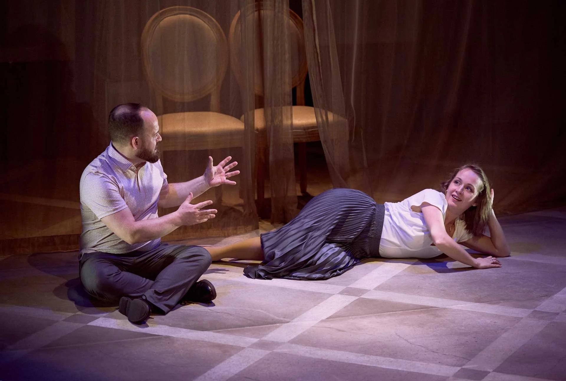 As audiences will find out watching the play, MacKenzie is at home in contemporary Canadian theatre, where real-life confessionals are common; laying her story bare was a little more of a leap for his wife, who had been raised amid “high culture” and historic theatre traditions. (The pair first met in Ukraine in 2018, when MacKenzie travelled to Kiev as a dramaturg for a workshop of Lianna Makuch’s Barvinok; Khomutova was one of the actors, and they became fast friends. As MacKenzie says, “It was very much a love born in theatre.”)