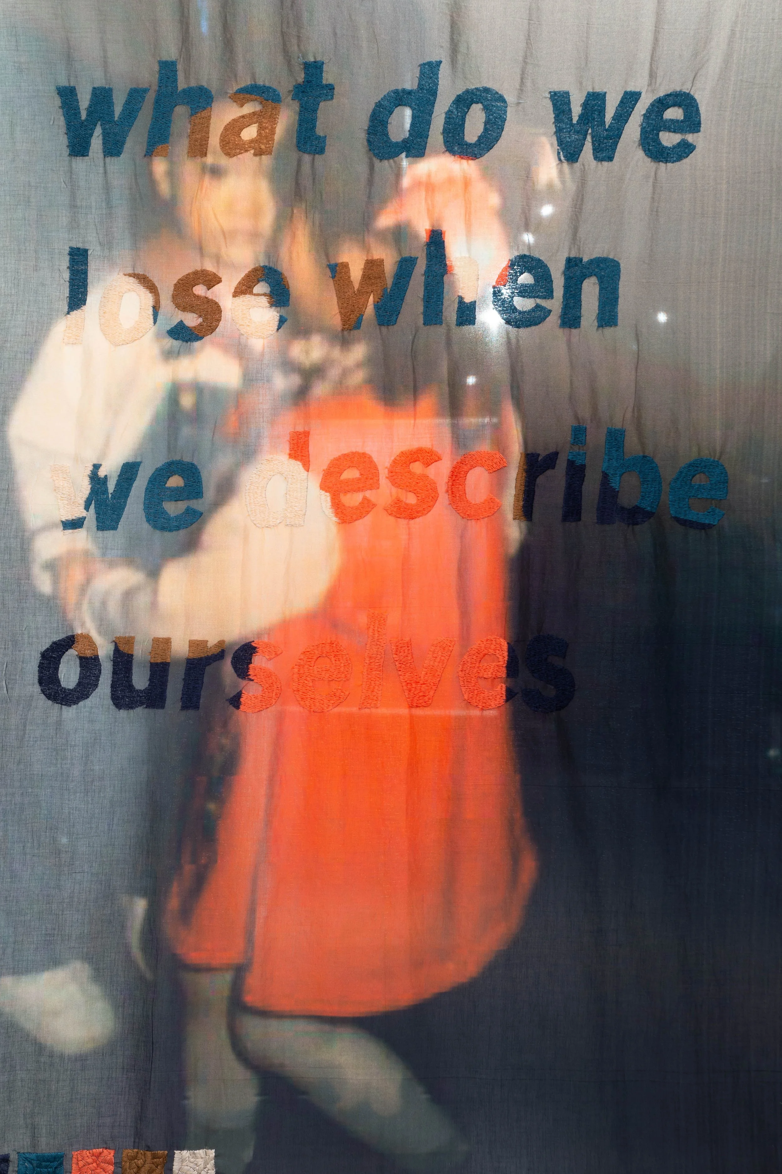 Lan Florence Yee’s A Legacy of Ethnography (2021); hand embroidery on inkjet print cotton voile. Photo by Alison Postma