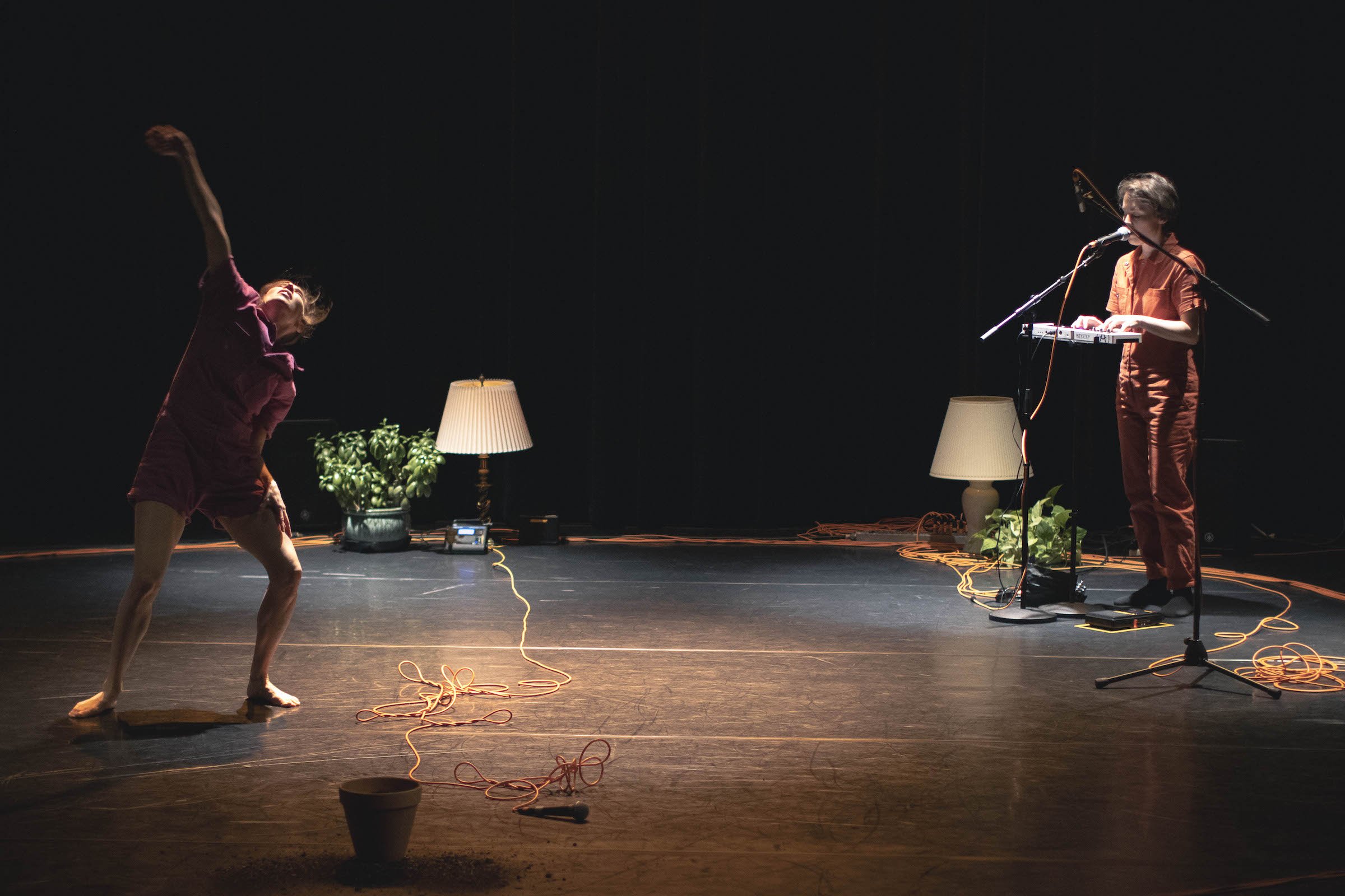 SINCE DEBUTING ONLINE here in 2021, Vanessa Goodman and Caroline Shaw’s mesmerizing Graveyards and Gardens has filled an array of venues around the world with dance and echoing voices. Plus the eclectic assortment of vintage lamps, potted plants, tape decks, portable record players, Orange Crush amps, and 400 feet of cable that the performers interact with throughout the work.