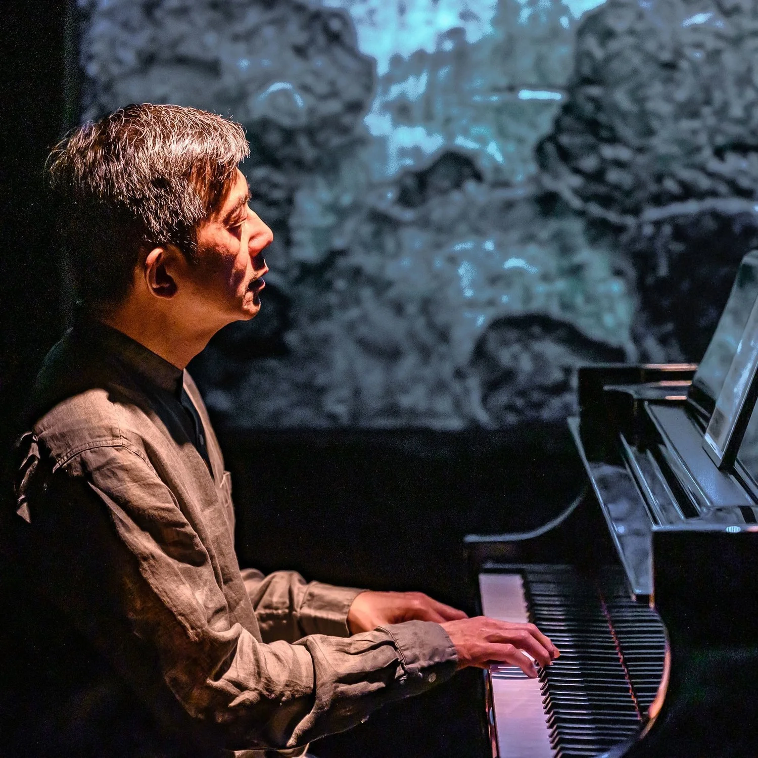 Njo Kong Kie reinterprets the humanity of Xu Lizhi’s poetry through piano, projections, and song. Photo by Dahlia Katz