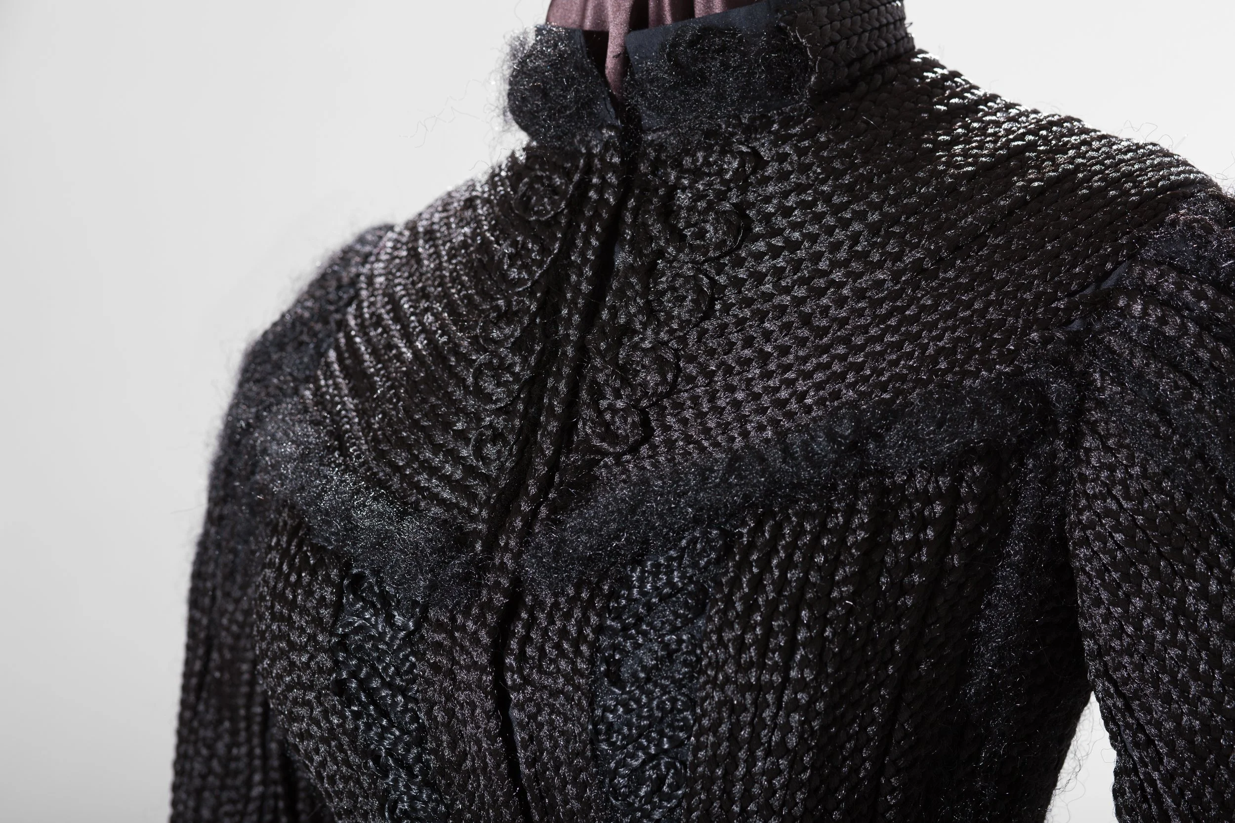 Show includes Worn, a Victorian mourning dress crafted from synthetic hair, alongside new works