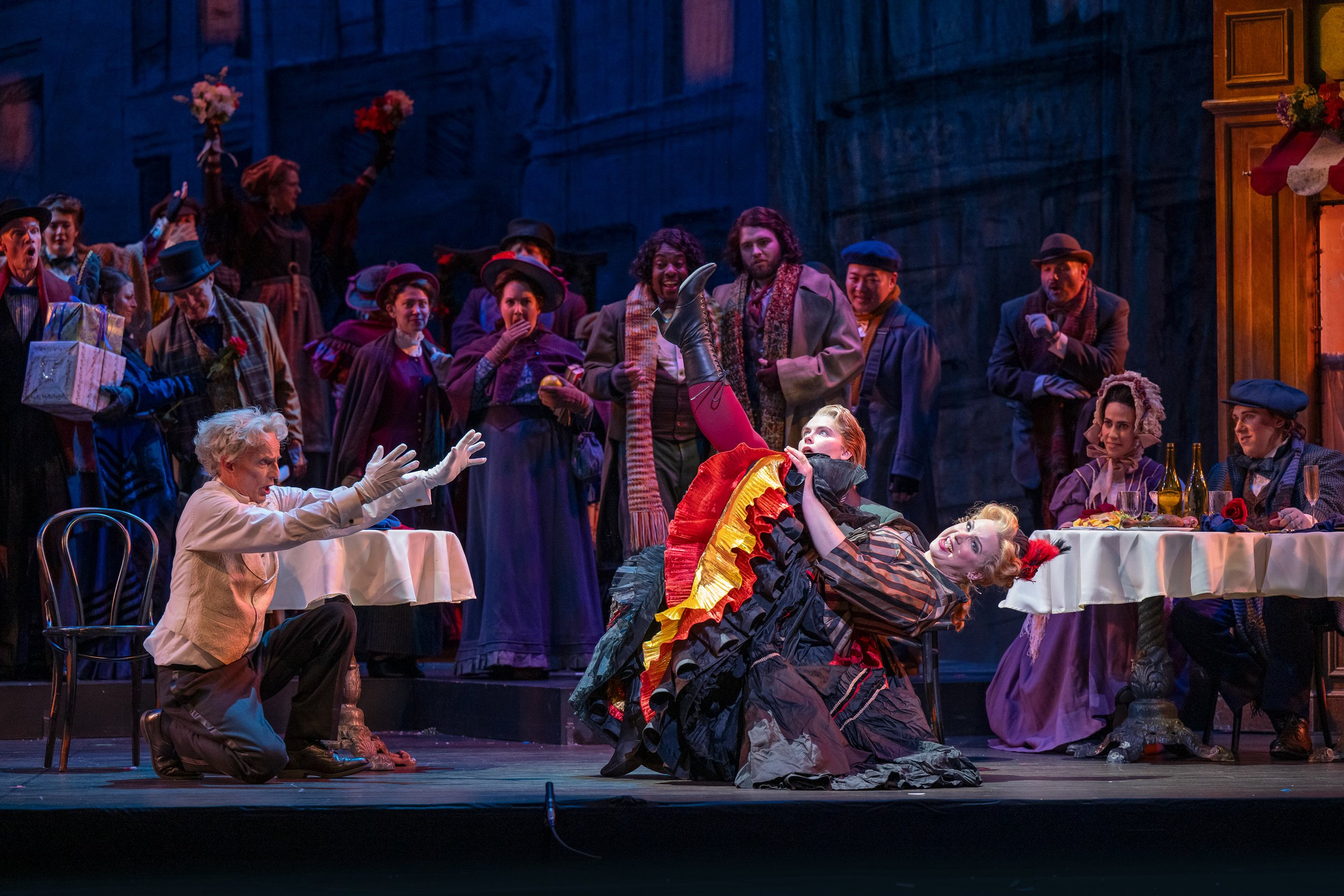Still, Corner knows when to pull back and let Puccini’s music do its considerable stuff. This production is full of the kind of lush sonic pleasures that audiences hope for at La Bohème. As the central couple, Zachary Rioux and Lucia Cesaroni are beautifully balanced (and word has it that Matthew White and Jonelle Sills, who alternate as Rodolfo and Mimi, are equally strong). Note the languorous, yearning quality Darlington and tenor Rioux give to the introductory aria “Che gelida manina”, and the effortlessness of Cesaroni’s following, famed “Mi chiamano Mimi”, in which she builds her exceptionally warm soprano from demure attraction into swells of love. Resistance is futile as Darlington invites you to luxuriate in their ensuing duet.