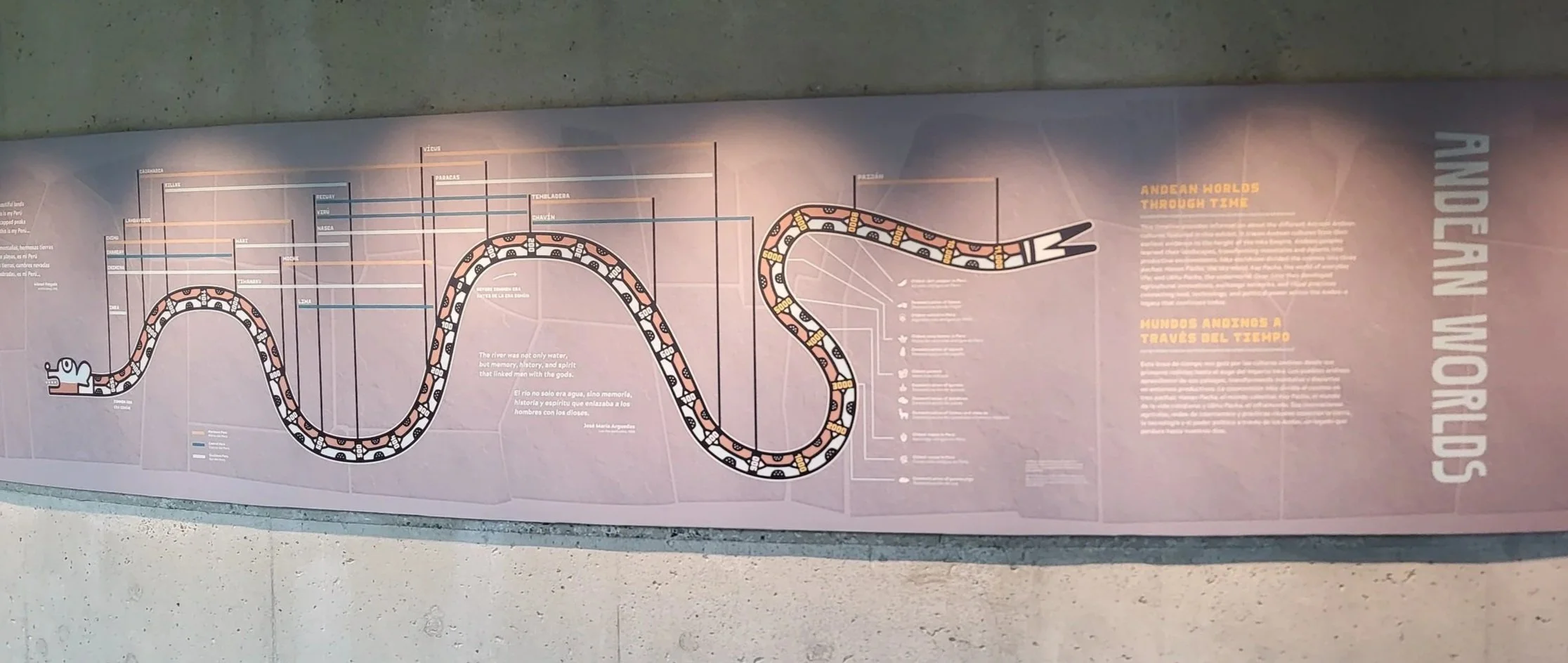 In the Museum of Anthropology at UBC’s newest exhibition, Tupananchiskama: Ancient Andean Cosmovision, the serpent is a timeline, adorned with the names of over a dozen ancient civilizations and the years in which they rose, reigned, and fell. The new show focuses on the religions that developed between the peaks and plateaus of South America’s largest mountain range.