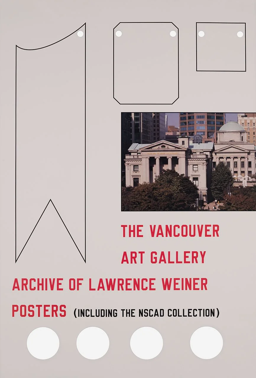 Lawrence Weiner, THE VANCOUVER ART GALLERY ARCHIVE OF LAWRENCE WEINER POSTERS (INCLUDING THE NSCAD COLLECTION), 1993, offset lithograph on paper, Collection of the Vancouver Art Gallery, Published by the Vancouver Art Gallery, 1993, VAG 93.19, Photo by Vancouver Art Gallery, © 2024 Lawrence Weiner Estate/Artists Rights Society (ARS), New York/CARCC Ottawa 2024