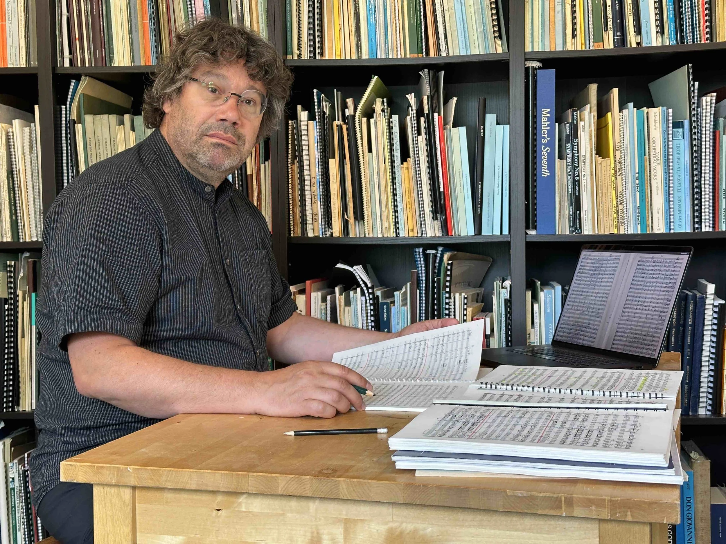 Arnold first encountered Mosolov’s Symphony No. 3 during a visit to the Russian State Library, where the manuscript was hiding. The librarian on duty—fully aware of the rules—turned her gaze while he photographed every page of the handwritten score using his phone.