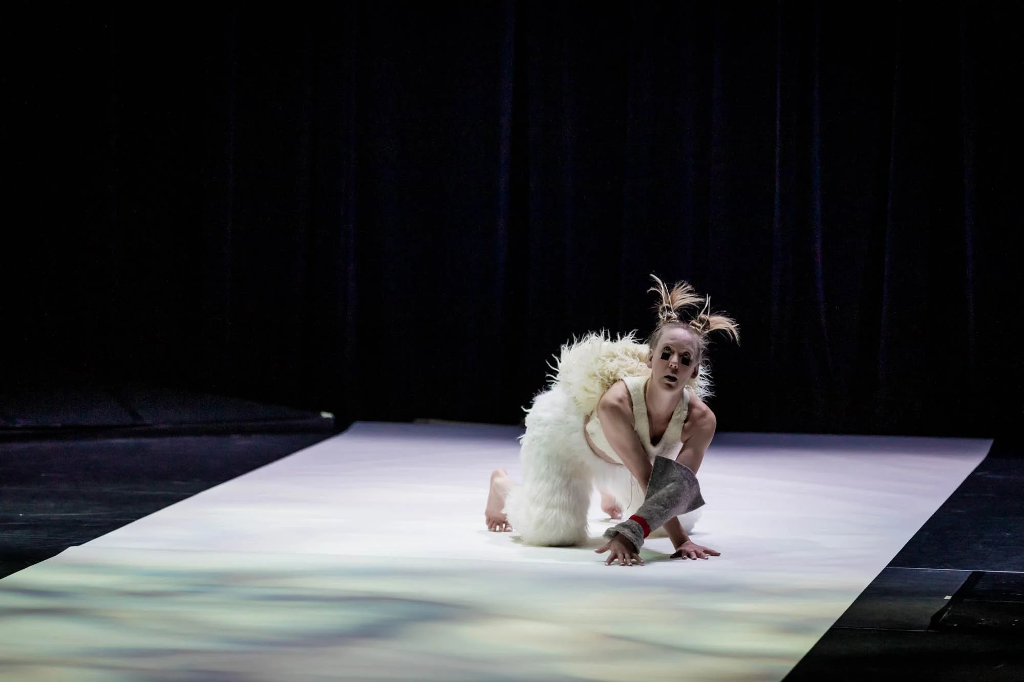 Other world premieres include Delinquent Theatre’s The Seventh Fire, an Anishnaabe “audio ceremony” with Lisa Cooke Ravensbergen, running at various times through the fest at the immersive Lobe Studio. Also main its debut in a copresentation with the Cultch is Rakesh Sukesh’s dancework because i love the diversity (this micro-attitude, we all have it), a solo performance using dance, music, and text to embody inner turmoil and to interrogate the political use of technology—specifically, racial profiling. Elsewhere in dance, Canada’s New Dance Horizons sees the world premiere of THIS & the last caribou. At the Annex January 25 and 26, it features a trio works exploring our place in relation to history and nature: a solitary figure adrift on a carpet of ice; waves and a candy-coloured clown; a caribou dancer and their shadow.