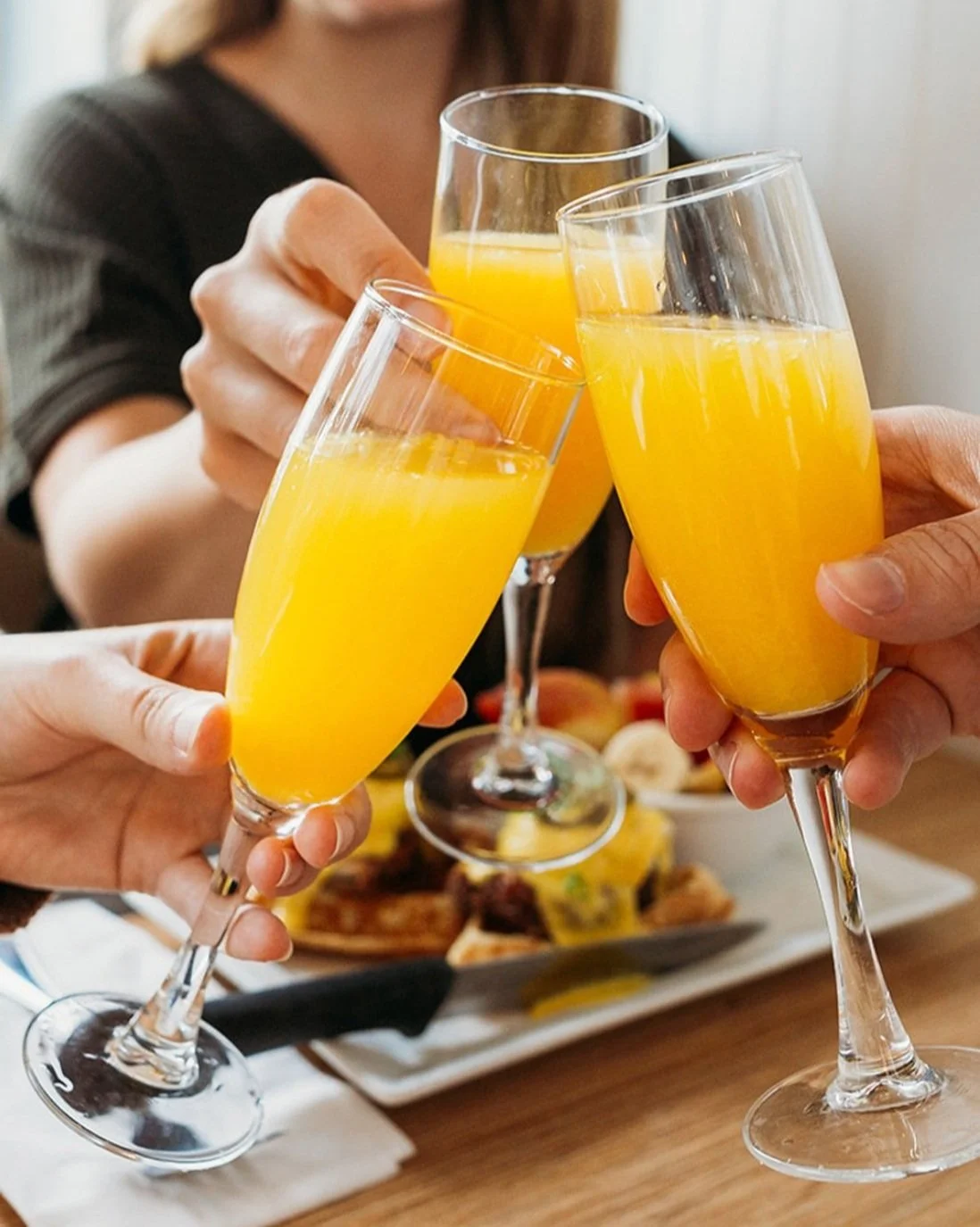 Mimosas made from freshly squeezed orange juice at Yolks.