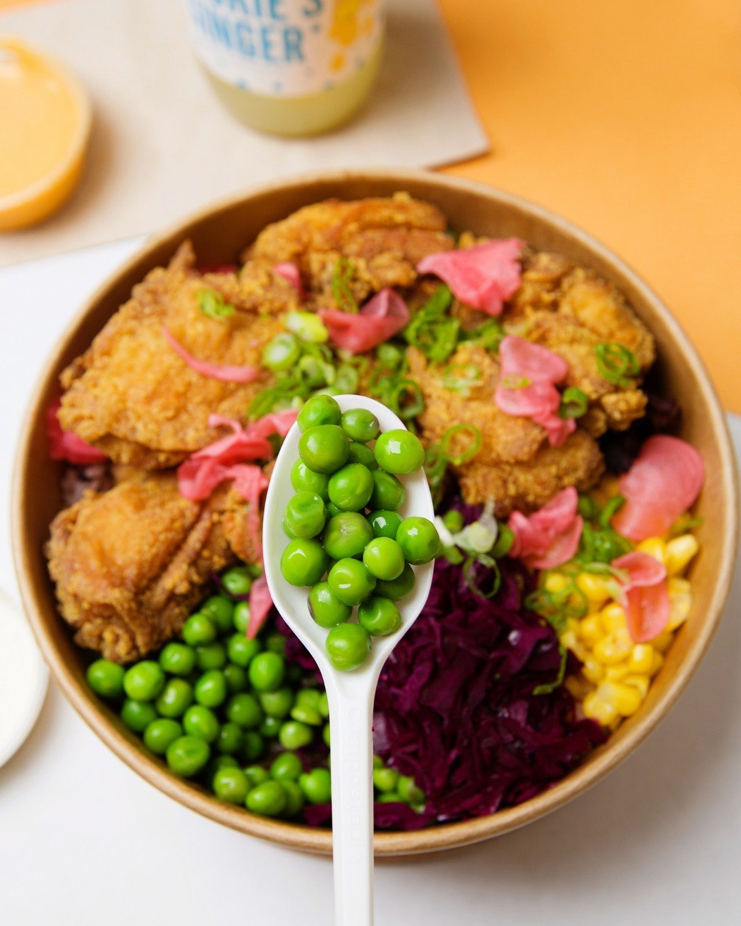 Korean Fried Chicken rice bowl at Disco Cheetah.