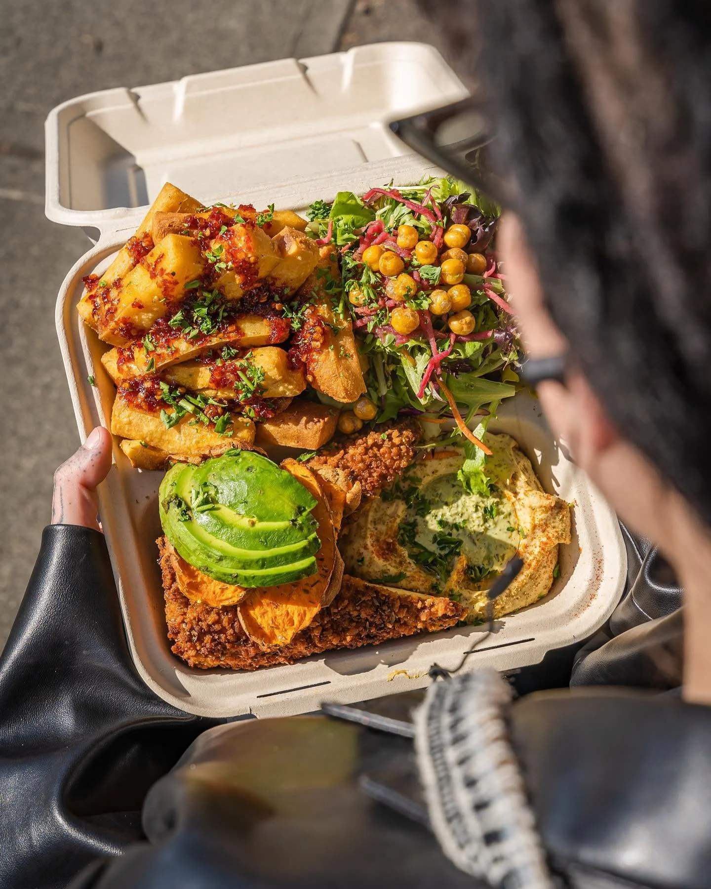 While their Main Street restaurant is now a Riley Park staple, Chickpea first started as a food truck back in 2016, cruising the streets of Vancouver’s downtown core, festivals, and farmer’s markets. Hummus is the crown jewel of the joint’s plant-based Middle Eastern menu devised by chef Itamar Shani. You can devour it in a method of your choosing—pita, salad, rice bowl, hummus plate, or platter—with a creative main. Standouts include the Falafel, an herby, spiced take on the classic crispy-yet-soft fritters, and the Calamachick, deep-fried tempura-battered oyster mushrooms served with tzatziki, meant to mimic calamari. If all else fails, you can always order a $9 container of deliciously creamy take-away hummus to dip your troubles away before heading inside the Parker Street Studios to check out some amazing art.