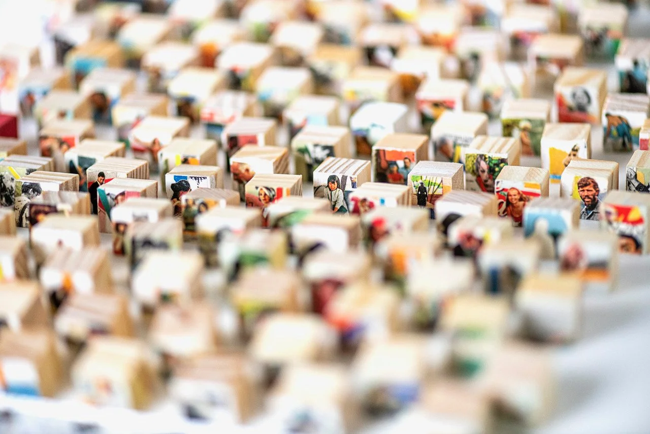 “Creating this piece involved selecting magazine images where the focus wasn’t on a single subject but on the many characters in the margins. I carefully cut out these overlooked figures and placed them on wooden cubes, allowing each to occupy a unique, intimate space. The size of the work invites viewers to pause and wonder about the lives of these unnoticed people.