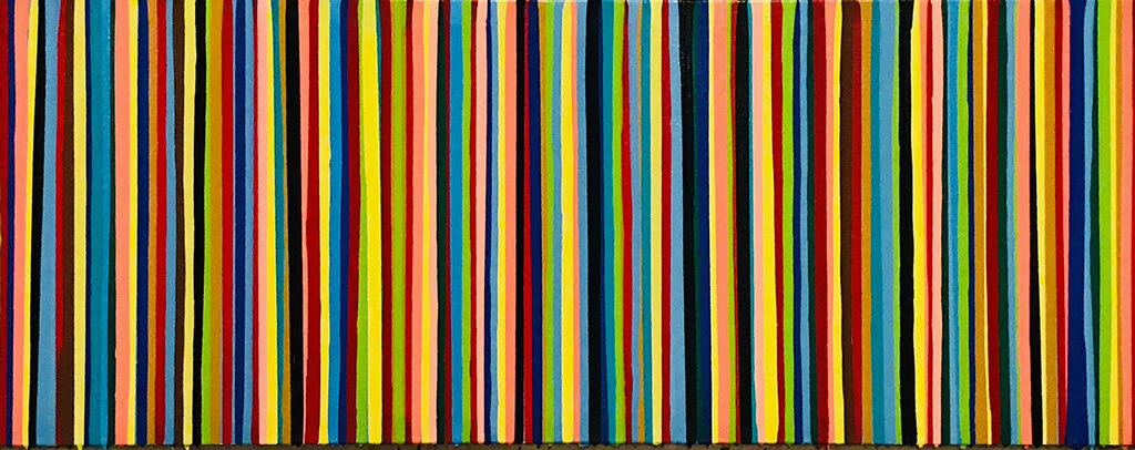 Roman Rozumnyj’s STRIPES #23 (acrylic on canvas; 14 inches by 36 inches by 1.5 inches) is among the scores of artworks on virtual view at the 2021 North Shore Art Crawl.