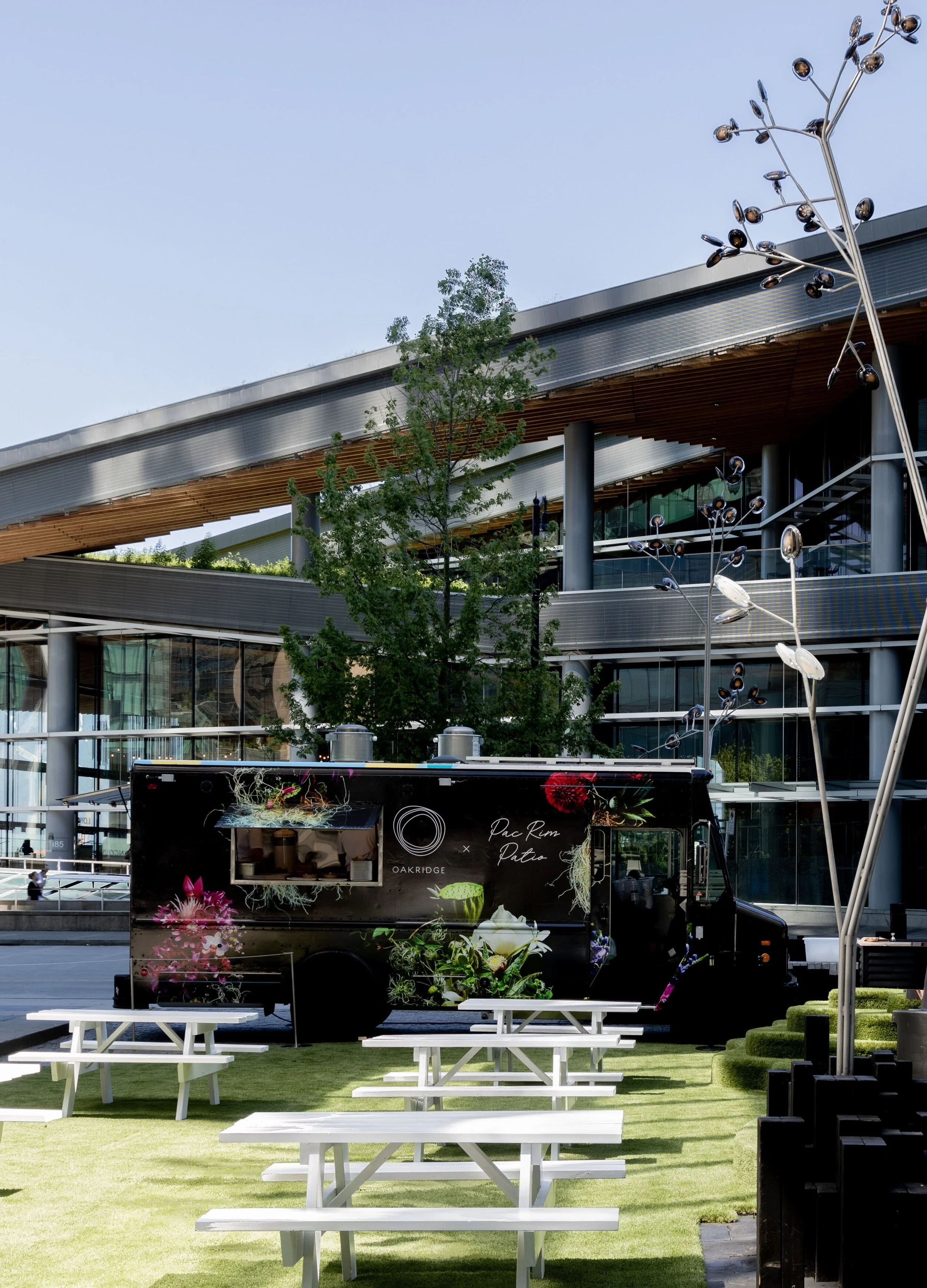 A TERRACED RICE paddy-inspired dining spot is bringing a bit of green to downtown Vancouver complete with sculpted shrubbery that would make Edward Scissorhands proud: the Oakridge x Pac Rim Patio (in partnership with Westbank) is a mini reflection of the planned 10-acre public park at Oakridge Centre, which will be partially on the mall’s rooftop and partially at ground level.