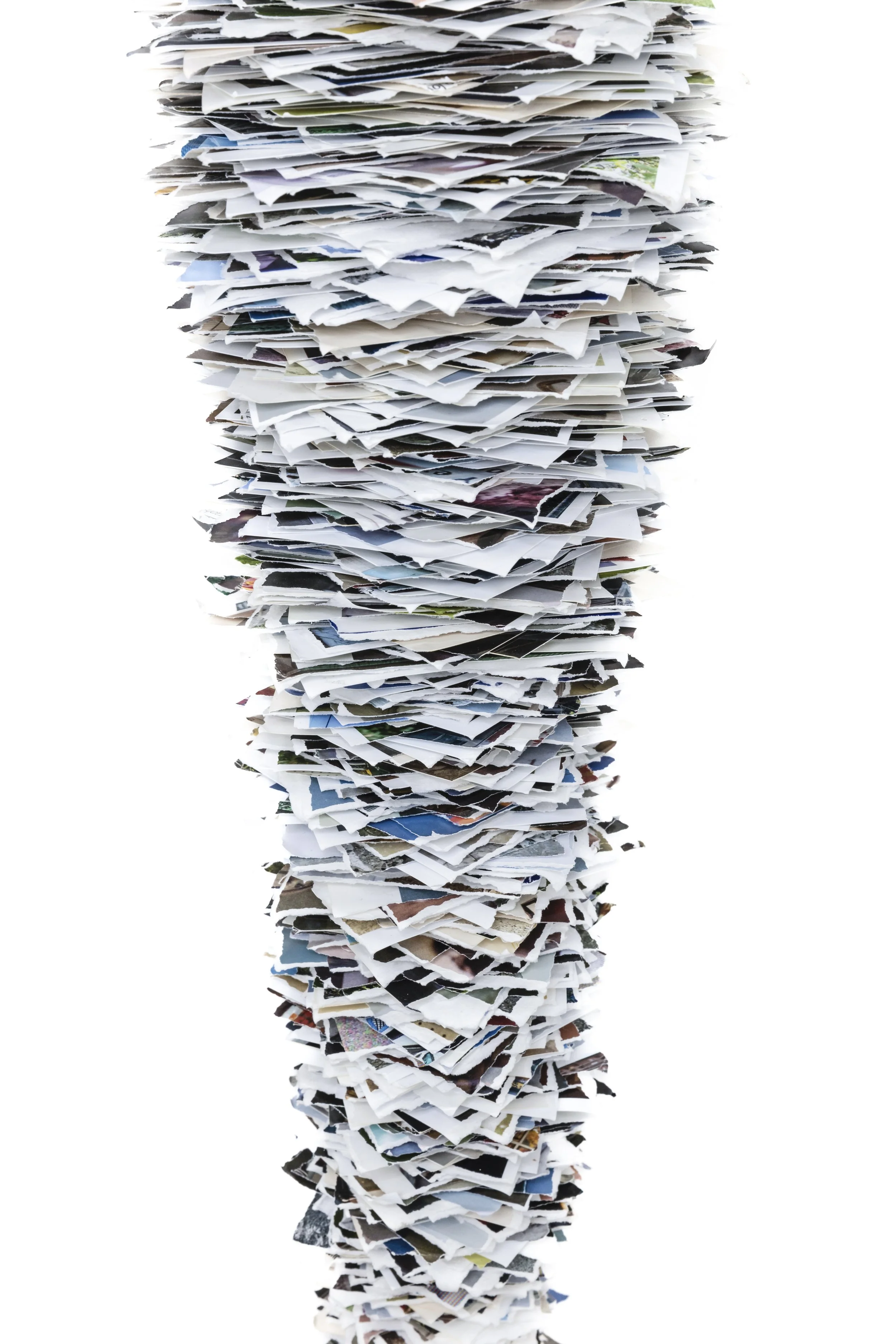 Jayce Salloum’s nest (detail), 2016, torn photographs. Courtesy of the artist, Mónica Reyes Gallery, and MKG127 Gallery