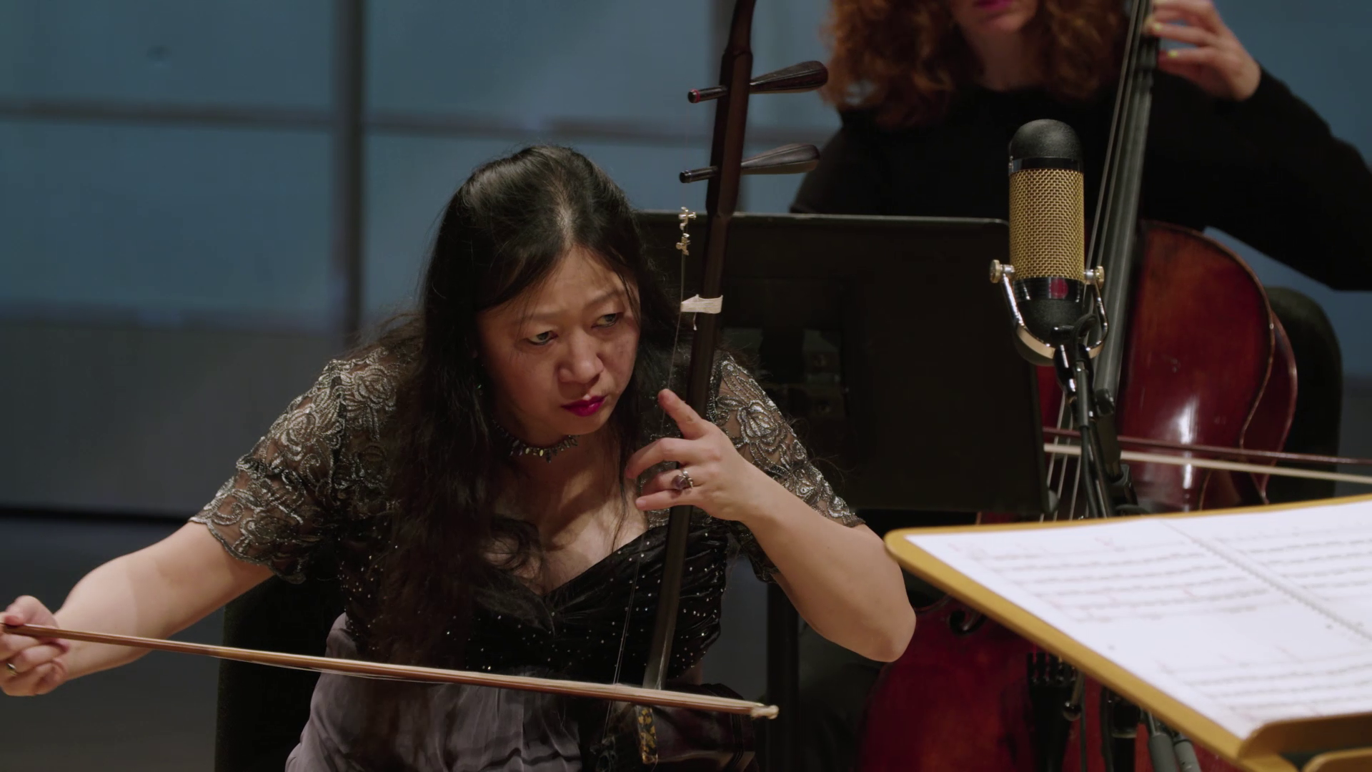 Concerto Étude—a work for erhu, strings, and electric guitar sample—travels from peaceful melodies to pulsing rhythms to dense string textures.