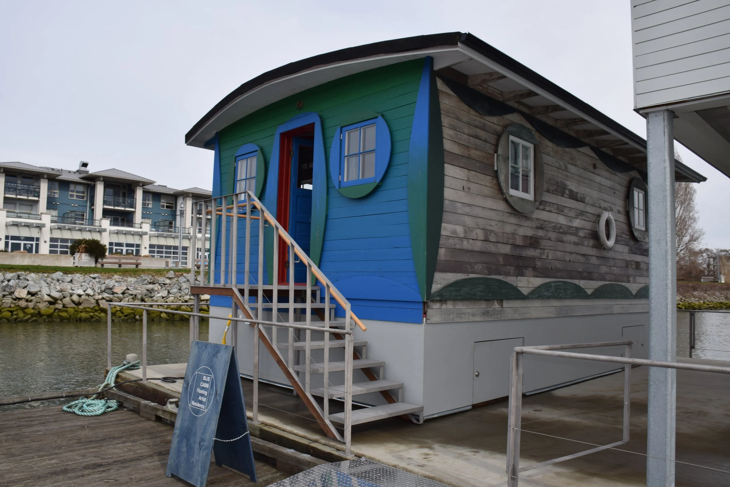 THE BLUE CABIN, a quaint artist residency with a vibrant history, now overlooks the teal waters of Steveston Harbour.