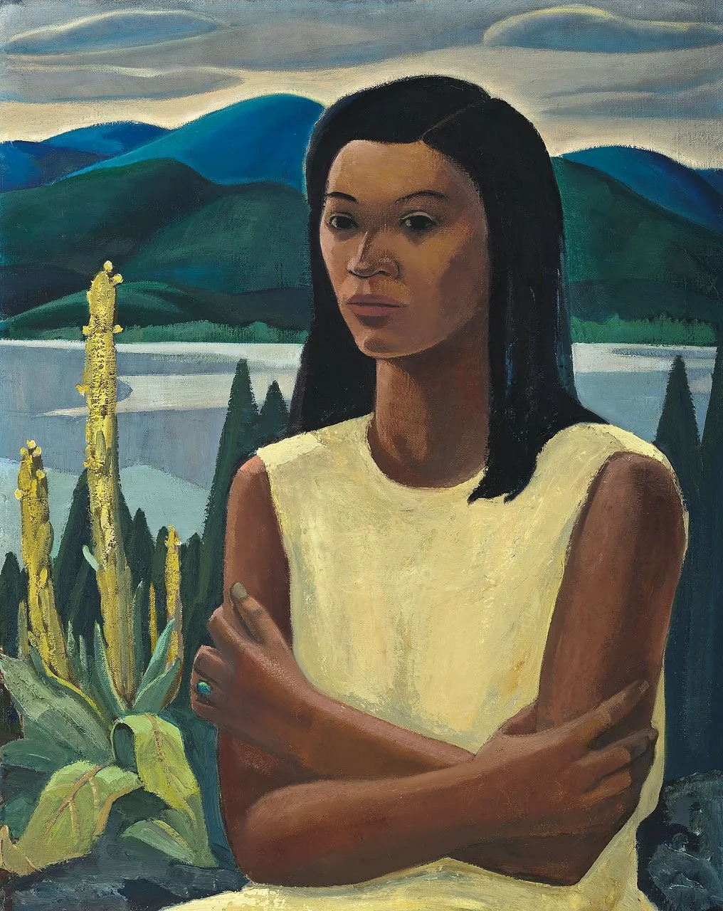 Yvonne McKague Housser’s Marguerite Pilot of Deep River (Girl with Mulleins), c. 1936–40, oil on canvas, McMichael Canadian Art Collection, Gift of the Founders, Robert and Signe McMichael, © Estate of Yvonne McKague Housser