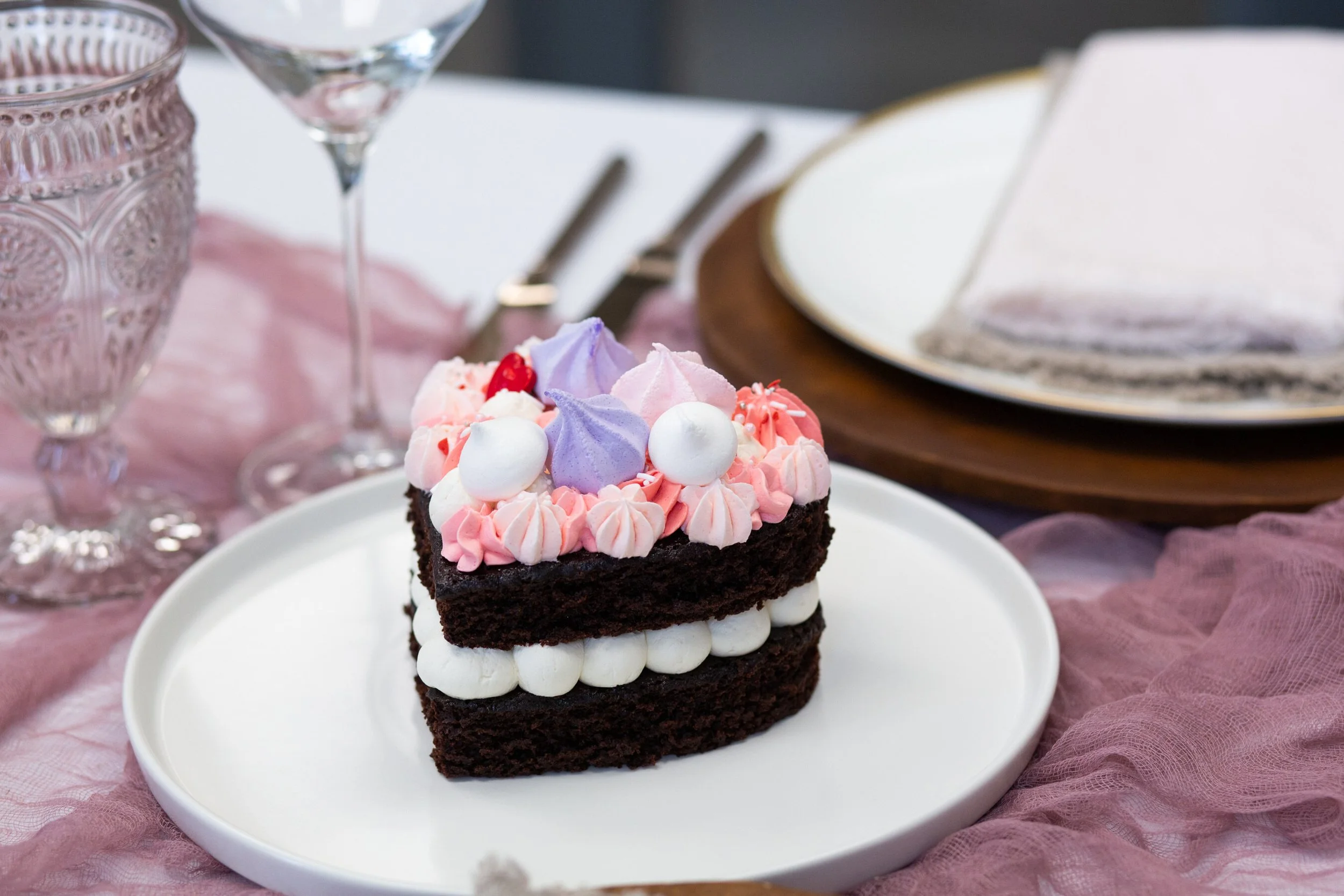 Among the Lazy Gourmet’s 2022 offerings, which include a virtual cooking class and a date-night grazing box, is a heart-shaped Valentine’s Day chocolate cake with Italian meringue buttercream, layered and topped with assorted meringues and sprinkles.