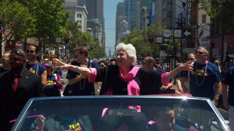 Olympia Dukakis as Pride Parade celebrity marshall in Olympia.