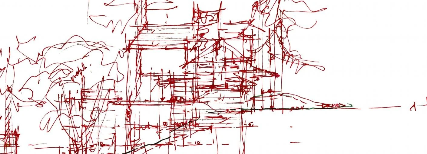 Paul Merrick’s Sketch of the Merrick House (West Vancouver), ink on paper. Courtesy of Alastair Johnstone and Jeanette Langmann, part of the Twist of the Rules: The Architecture of Paul Merrick at the West Vancouver Art Museum.
