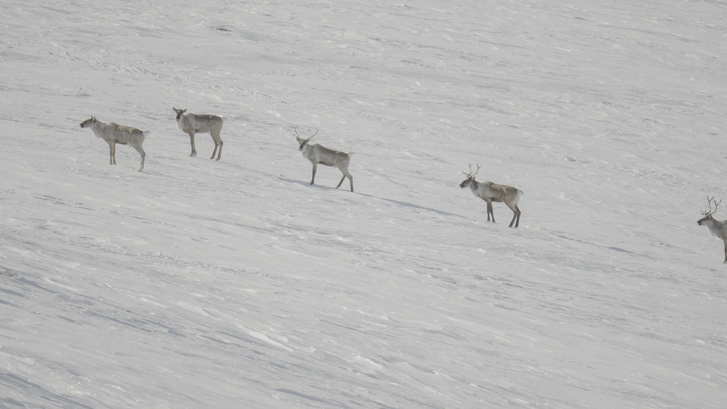 The caribou in B.C.’s northern interior travel hundreds of kilometres, requiring vast amounts of space that everything from wildfires to an ever-industrializing society is gobbling up. Fittingly, filmmaker and Tsay Keh Dene Nation member Luke Gleeson gives these fascinating animals room to move, taking his time to shoot them from high above, running along remote, wintry landscapes in this artfully meditative new documentary. Interweaving his grandfather’s stories of a time when the northern herds once filled the region’s valleys, he follows Indigenous guardians, government biologists, and guide outfitters as they rally to protect the near-mystical-seeming white animals, as a trifecta of climate-change-induced fires, increased logging, and pine-beetle destruction threatens the population. Just monitoring the caribou carries its own massive physical challenges: in one scene, we watch a researcher drop from a hovering helicopter with nets to try to take blood samples from one giant cow (without using tranquilizers). Animated maps vividly quantify the loss of habitat and encroaching wolves and roads. More than anything, though, Gleeson offers a chance to spend some contemplative time in one of B.C.’s most remote—but sadly no longer untouched—regions. JS ![]()