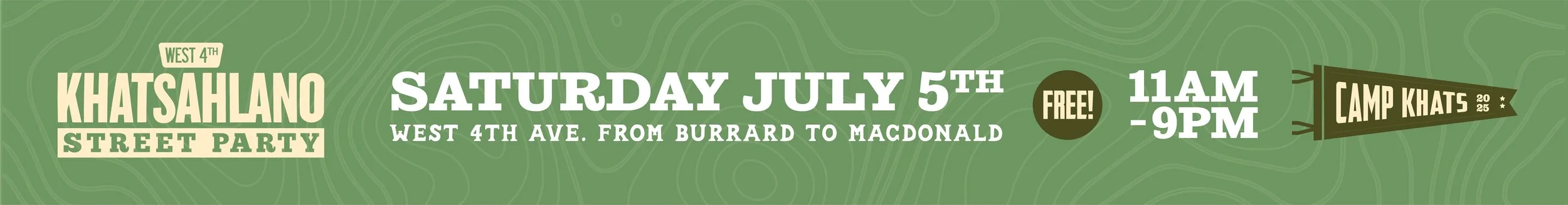 Khatsahlano Street Party respectfully acknowledges that it takes place on the unceded, traditional territories of the Musqueam, Squamish and Tsleil-Waututh First Nations.