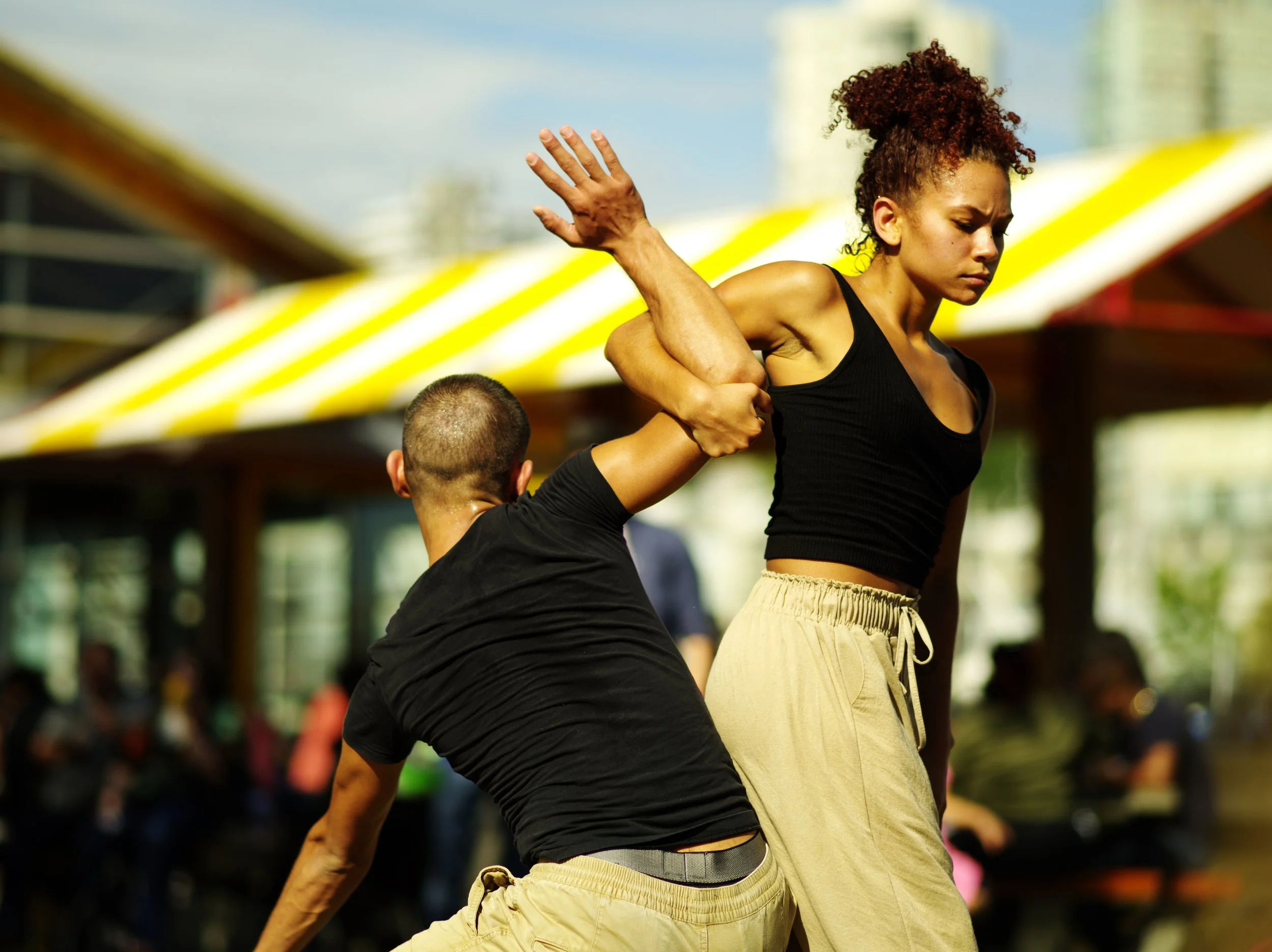 Marco Esccer and Ysadora Días performing for the New Works Summer Series on Granville Island, 2021. Photo by Yvonne Chew
